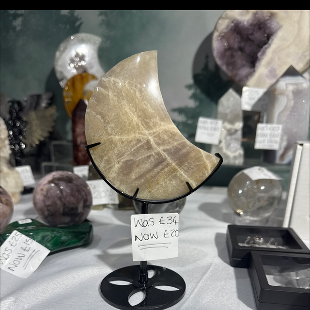 Moonstone moon on custom stand