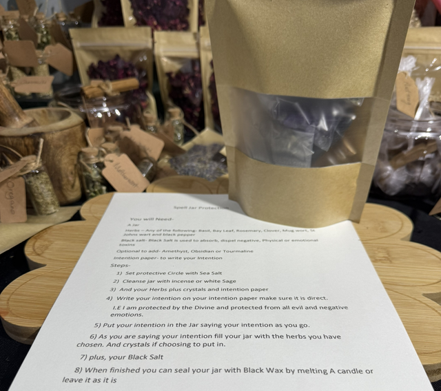 contains everything you need to make 2 protection spell jars plus extras to light the protective black candle and make a spell plate